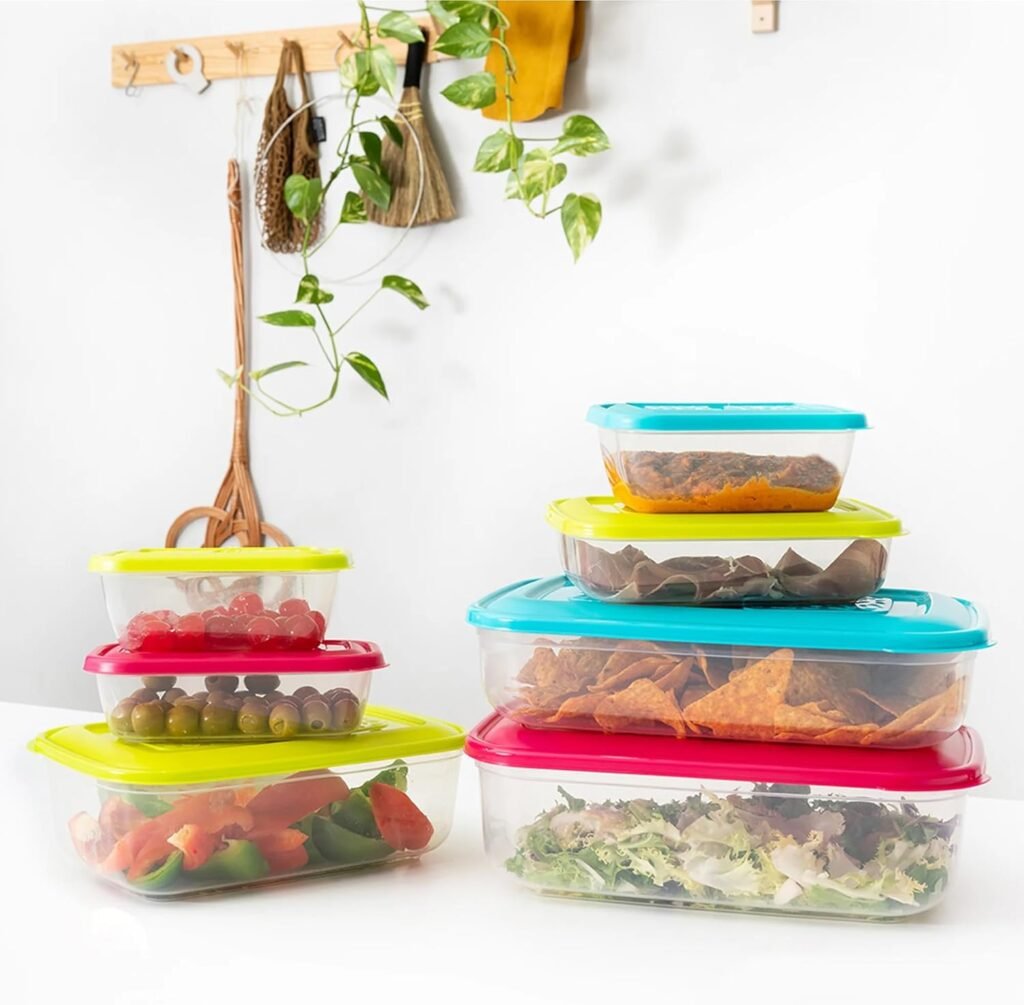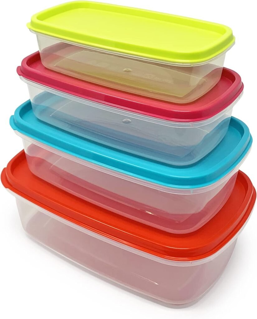 Set of 4 Food Storage Containers with Lids – Airtight & Stackable (250ml / 400ml / 700ml / 1000ml, Assorted Colors)